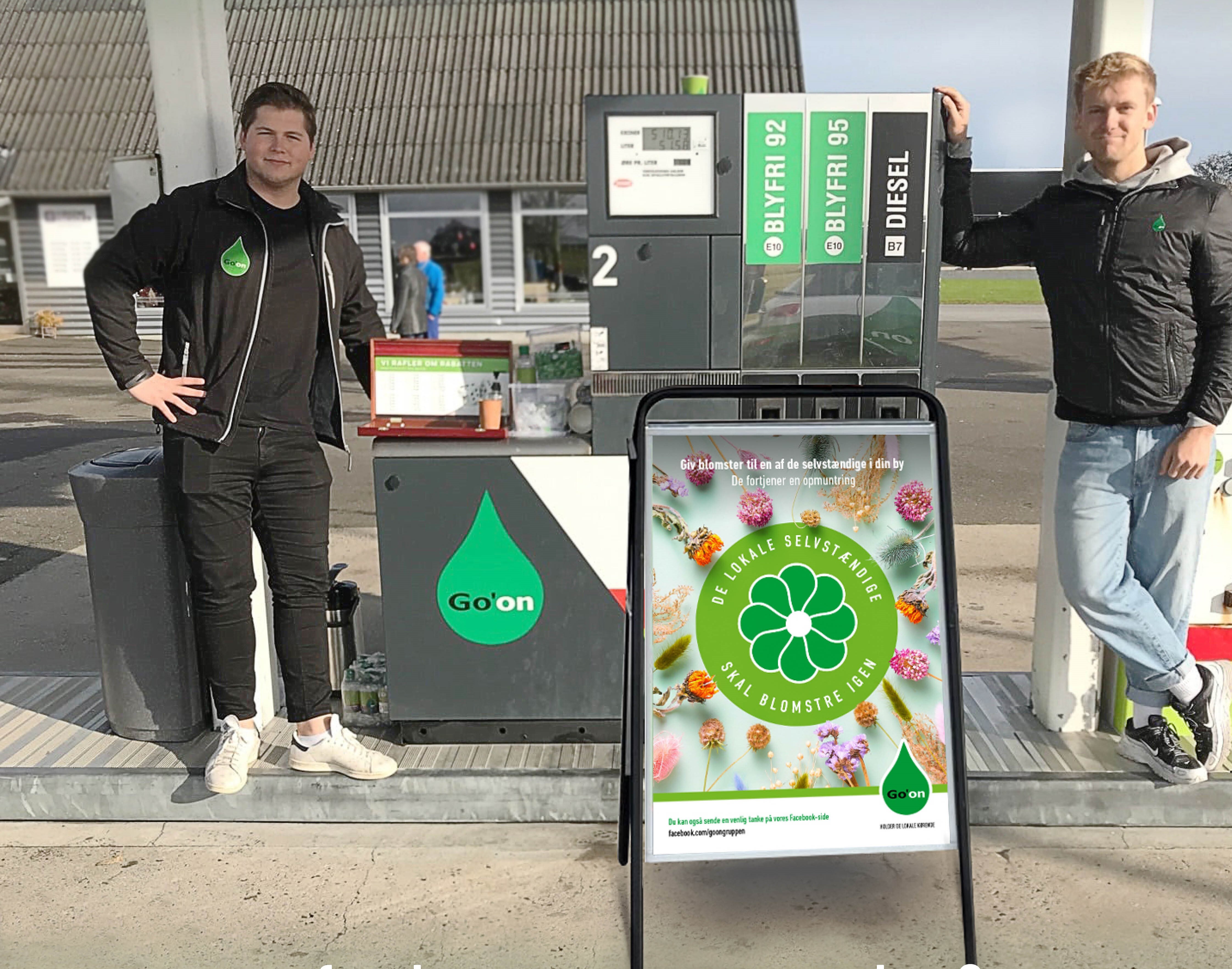 På Go’on tanken Ladegårdsbakken 16 i Skanderborg står Go’ons eventteam klar til at uddele buketterne.