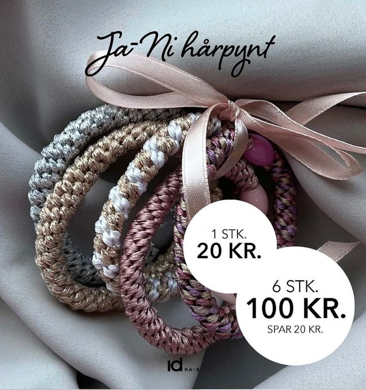 Er du også vild ned JA-NI Hair Elastics, det er vi🤗 Vi har dem på salonen. 1 stk. 20 kr. 6 stk. 100 kr. JA-NI hårelastikkerne er super lækre og er flettet af små tråde, som gør dem ekstra tykke. E...