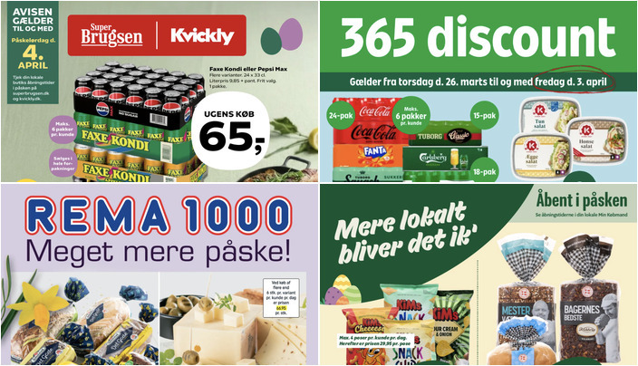 SuperBrugsen tilbyder Faxekondi eller Pepsi Max i pakker med 24 x 33 cl. til 65 kr. pr. pakke. Tilbuddet gælder fra fredag den 27. marts til lørdag den 4. april.