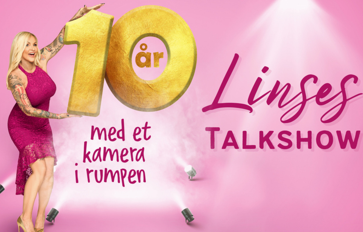 10 år med et kamera i rumpen! Kom med til det bedste og sjoveste talkshow i 2022: 'Linses Talkshow - 10 år med et kamera i rumpen.'